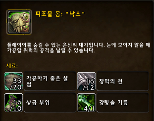 특별하게 추가로 필요한 재료는 낙스가 강령술 기름이 필요합니다.