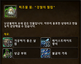 강철의 필립을 만들때 불굴의 가죽이 필요합니다.