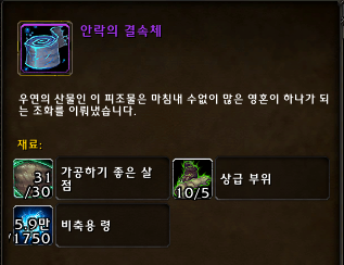 누더기 작업장 5단계를 찍으면 단결을 만들수 있습니다. 단결을 만드는 퀘스트 아이템이름이 안락의 결속체입니다.