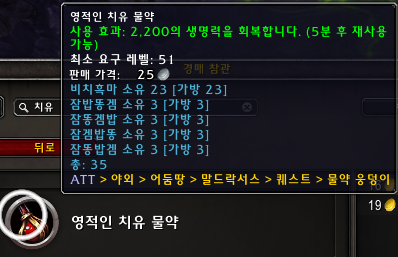 3순위는 현재 어둠땅 치유물약인 영적인 치유 물약입니다. 2200이 차는데 가격은싸지만 반밖에 안차서 비추입니다.