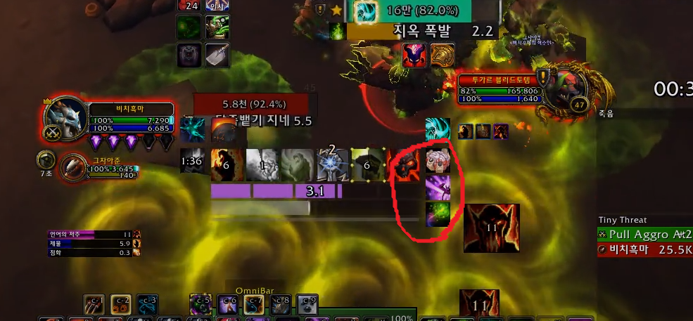 팁은 투가르 블러드토템에 언어의저주를 풀로 유지해주시면 정말 좋습니다. 그렇게 되면 지옥폭발의 시전시간이 매우길어지고 지옥폭발을 보고 공포를 시전해도 충분히 끊을수 있습니다. 영상보시면 아시겠지만 저는 대부분 공포로 끊었고 무빙중이거나 카볼을 땡기고있을때 이럴때 똥개차단이나 필고를 썻습니다.