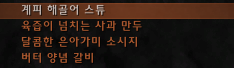 예외로 곰 육회라는 음식이 있는데 이동속도가 많이 필요하신분은 드셔도 됩니다. 보통 쌍둥이맵에서 많이 사용합니다.