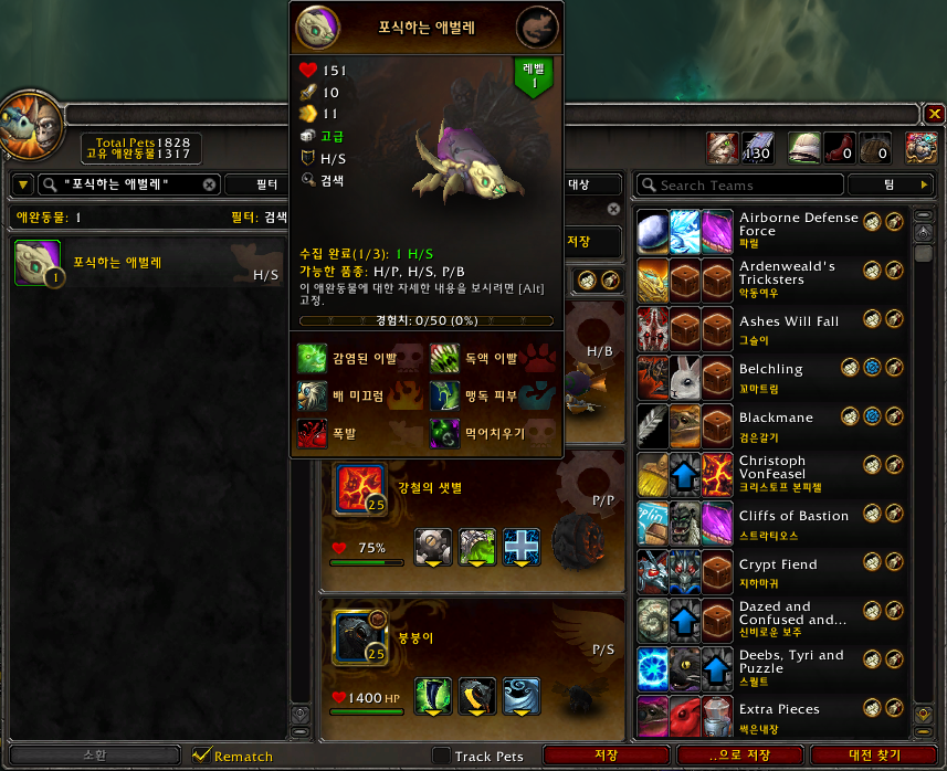 포식하는 애벌레 애완동물은 탐식자 스모가스라는 애완동물을 잡으면 일정확률로 획득가능합니다.