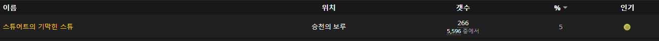 은테몹을잡아서 나오는게 아니라 중앙에 상자열면 나오는거라서 rarity에 집계가 안되서 첫트라고 뜨는데 한 30트넘게 한것같습니다.
