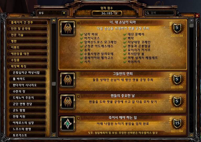| [와우업적]그들만의 연회 (1) | 2022.01.07 |