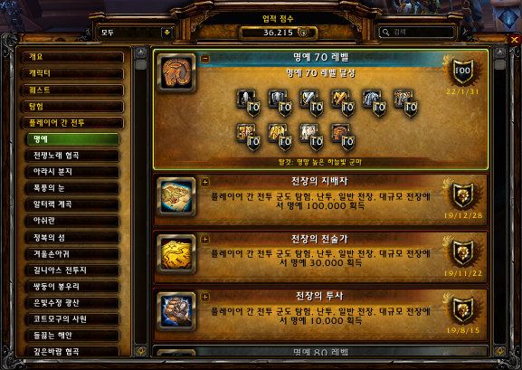 2022.01.31 명예 70 레벨 획득 10점짜리 36215점
