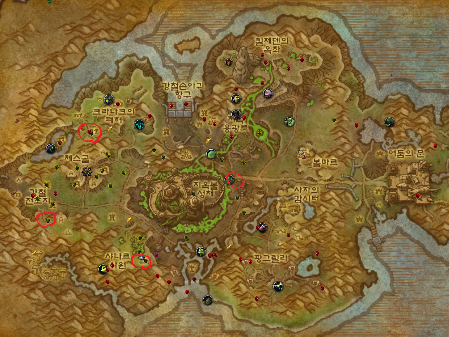 타나안밀림에가면 복수 / 공포주먹 / 죽음갈퀴 / 파멸바퀴 4개의 은테몹이있고 팝업이 되어있으면 미니맵에 표시가 됩니다.