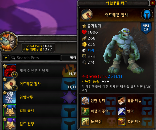 애완동물 허드레꾼 집사를 소환해서 건네줘서 완료하는 형식입니다.