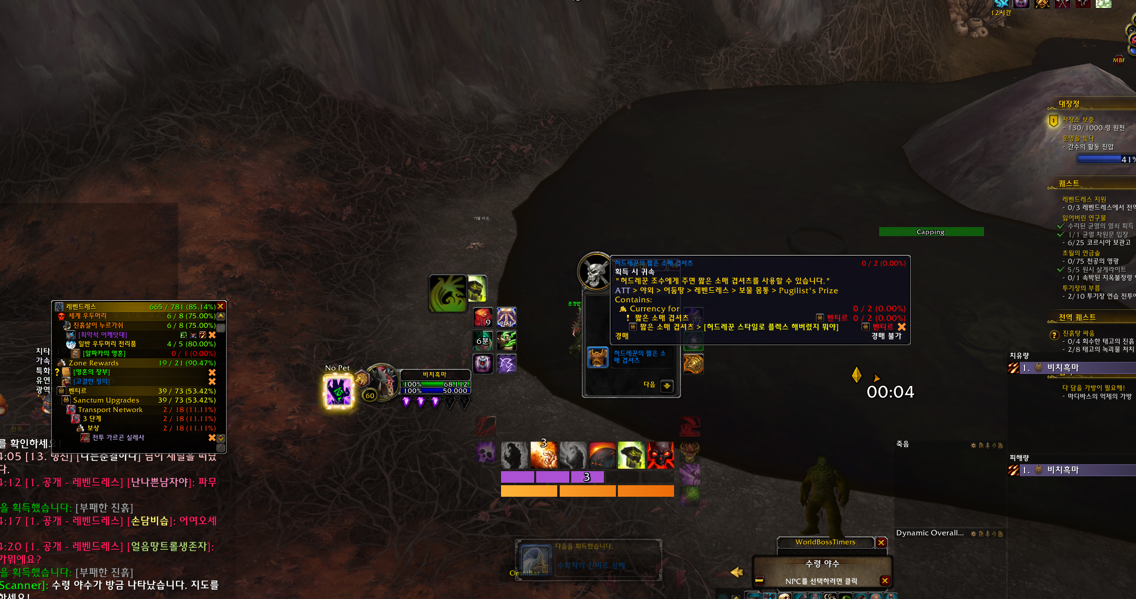 레벤드레스 해당지역에 전역퀘가 팝업되었을때