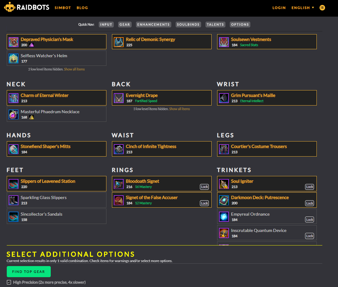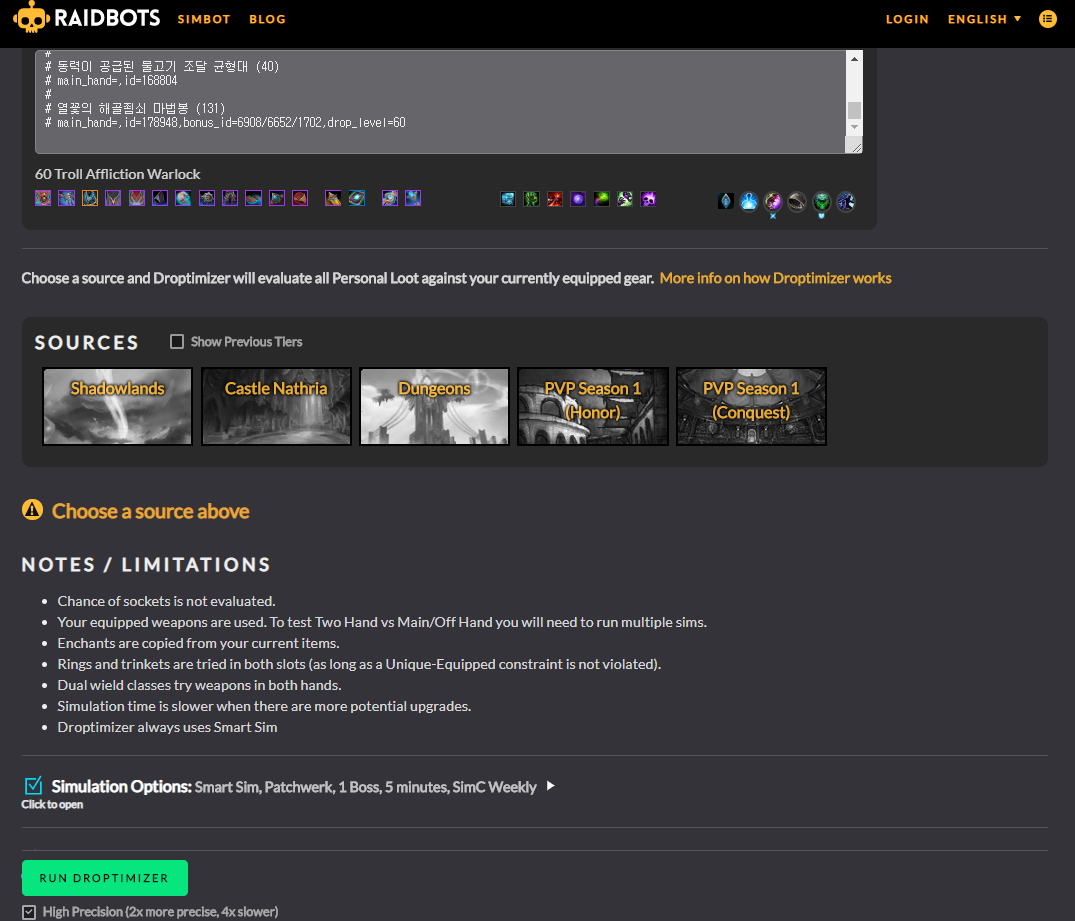 DROPTIMIZER - 현재확장팩 던전/레이드 에서 무슨템을 먹으면 현재보다 강해지는지 알수있는 기능입니다.