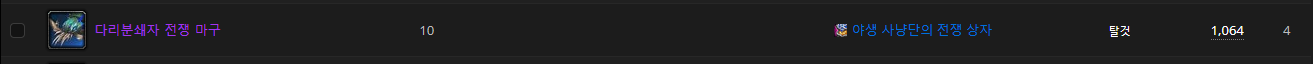 아이템은 다리분쇄자 전쟁 마구이고 탈것이름은 야생사냥단 다리분쇄자 입니다.