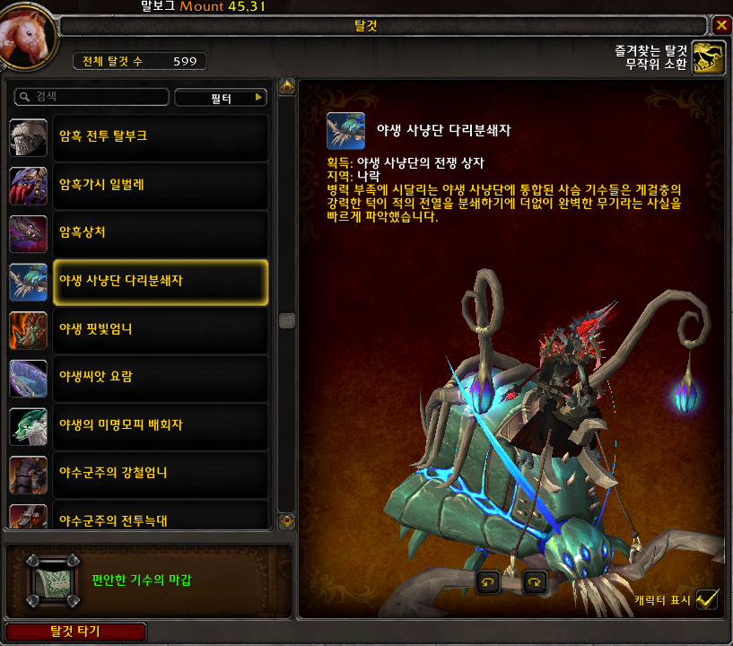 20222.02.13 야생 사냥단 다리분쇄자 획득 599번째 탈것