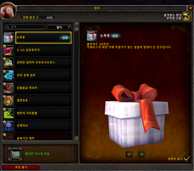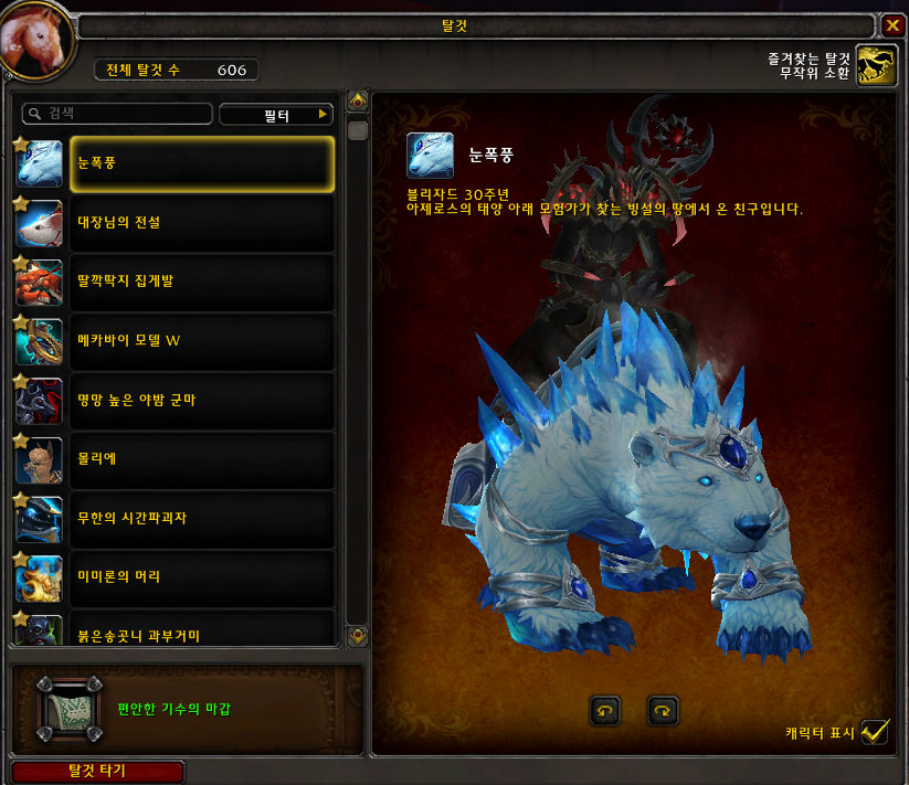 블리자드30주년 기념으로 나온 탈것입니다.