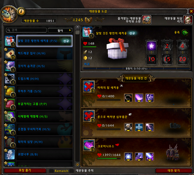 2022.02.22 달빛 깃든 황천의 새끼용 획득 1333번째 애완동물