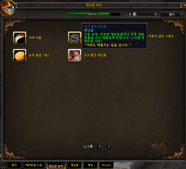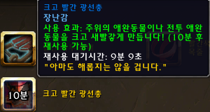 사용효과는 애완동물이나 전투 애완동물을 크고 새빨갛게 만든다고 써있습니다. 쿨타임은 10분입니다.