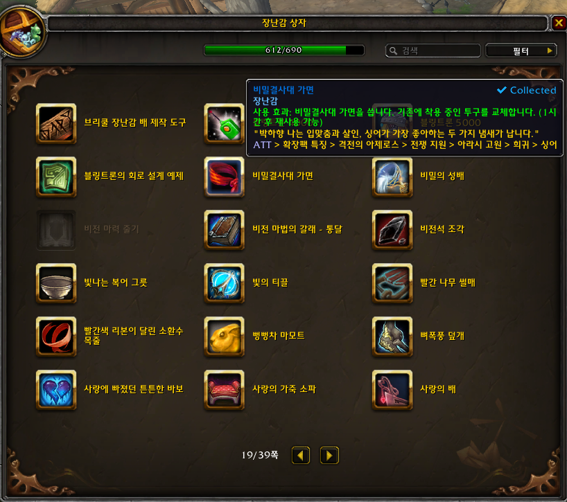비밀결사대 가면 장난감은 격전의 아제로스 확장팩 장난감입니다.