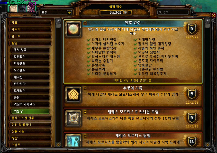 | [와우업적]추방의 기록 (3) | 2022.02.25 |