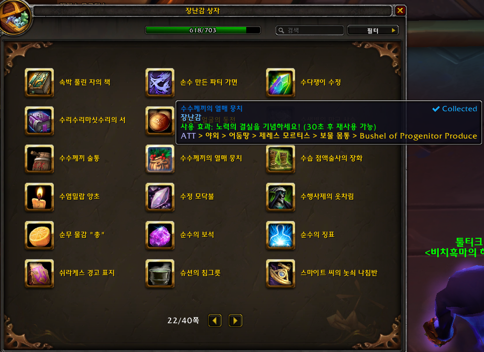 2022.03.09 수수께끼의 열매 뭉치 획득 618번째 장난감