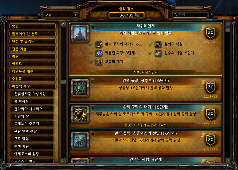 [와우업적]완벽 공략의 대가(16단계)