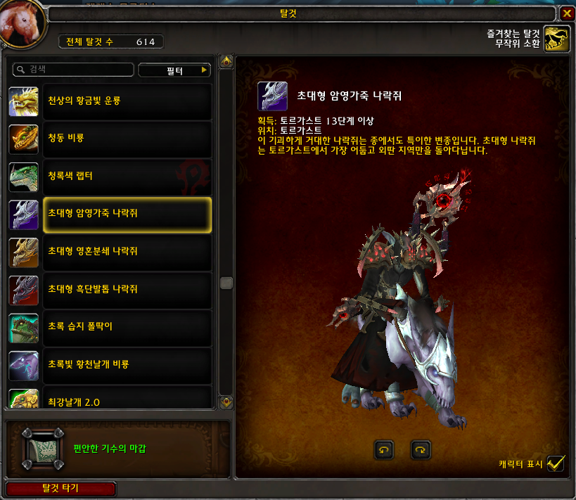 | [와우탈것]초대형 영혼분쇄 나락쥐 (0) | 2022.03.18 |