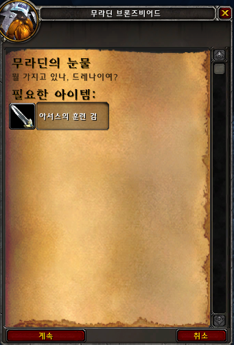 무라딘이 아서스의 훈련 검을 무라딘의 은총 장난감으로