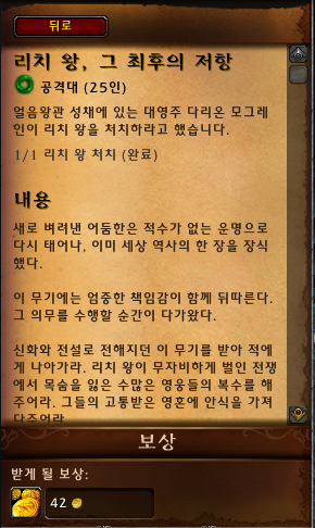 리치왕을 잡으라는 퀘스트를 줍니다.