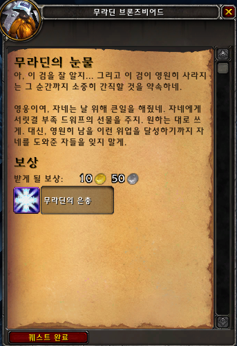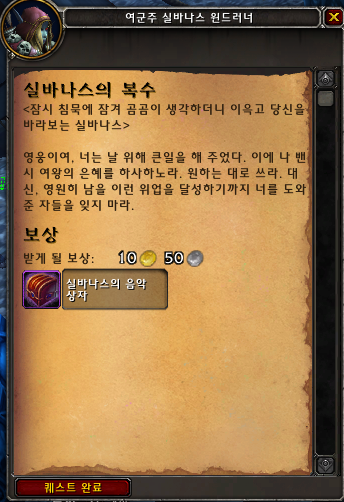 무라딘의 은총과 실바나스의 음악 상자는 어둠한을 만든사람에게 주는 보상입니다.