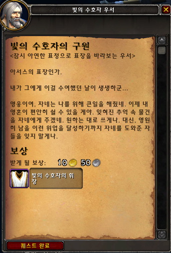 우서가 은빛 성기사단의 표장을 빛의 수호자의 휘장으로 바꿔줍니다.