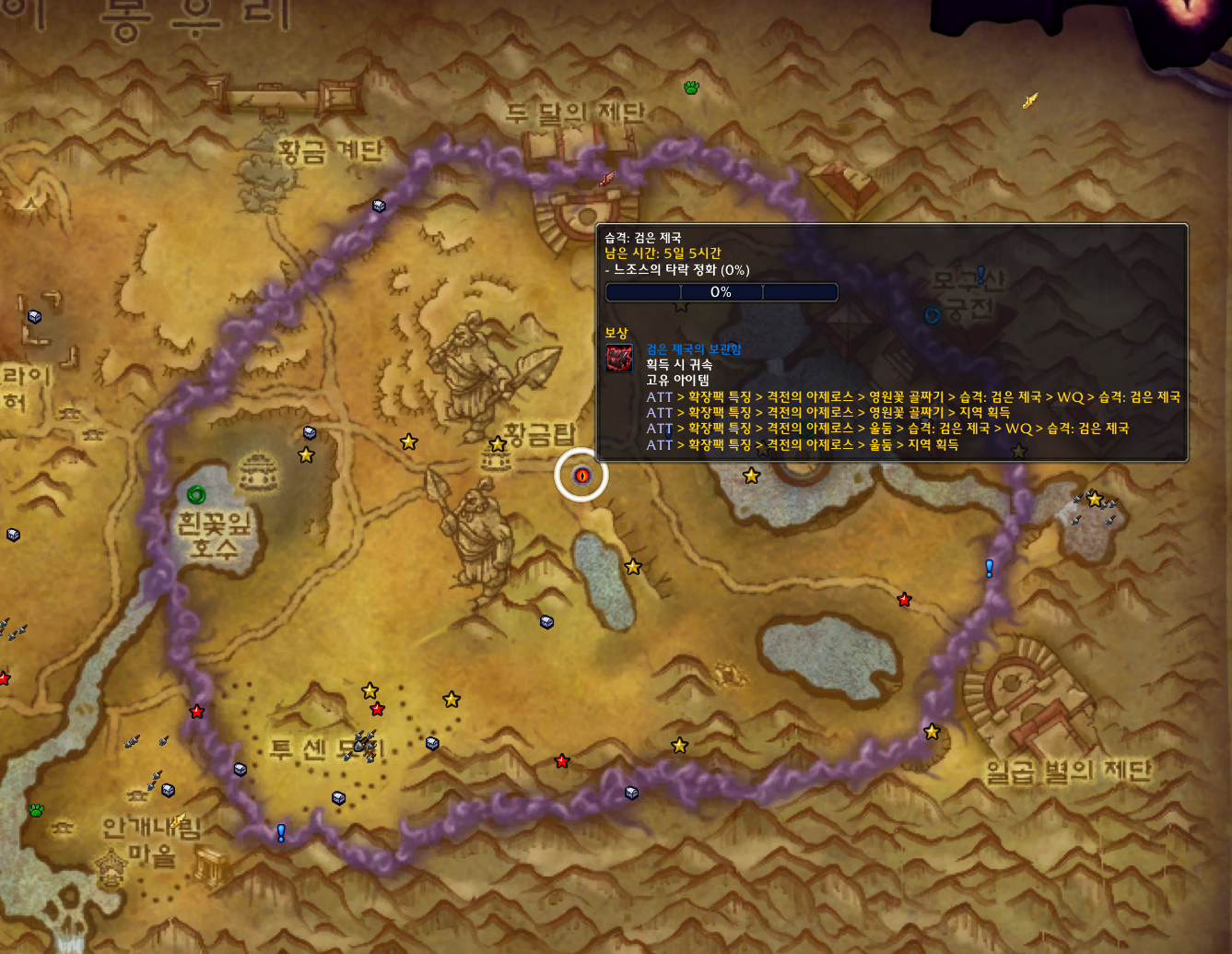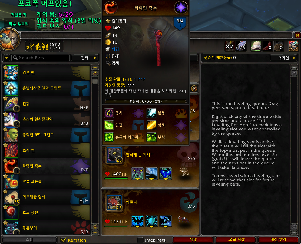 타락한 촉수는 격전의 아제로스 확장팩 애완동물로 영원꽃 골짜기에서 획득가능합니다.