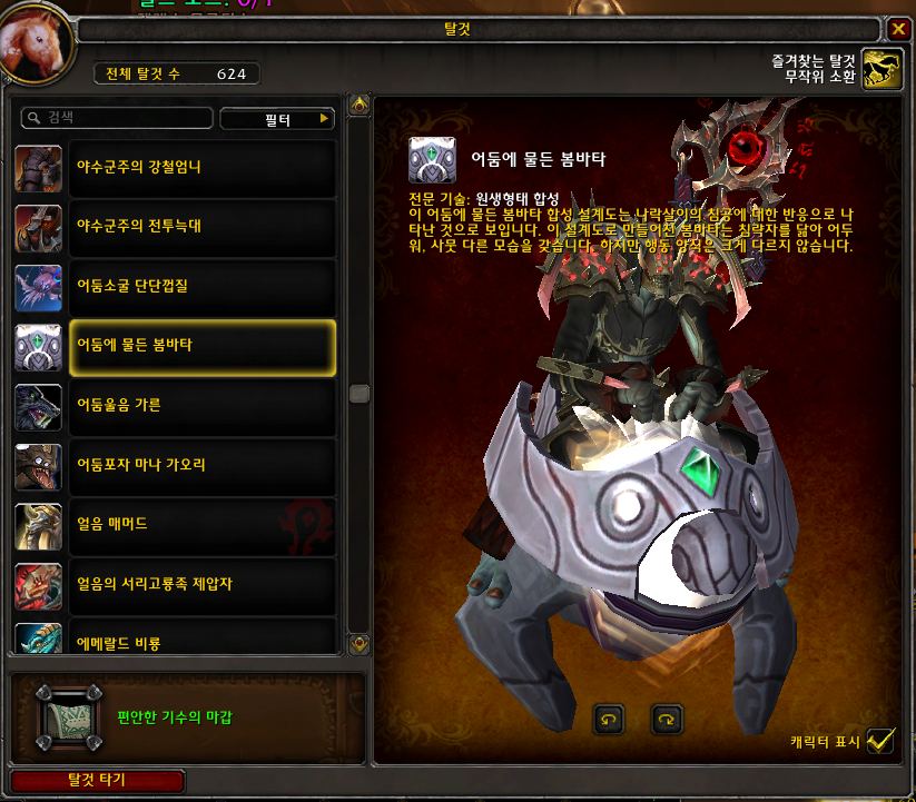 어둠에 물든 봄바타는 원생형태 합성으로 만드는 탈것입니다.