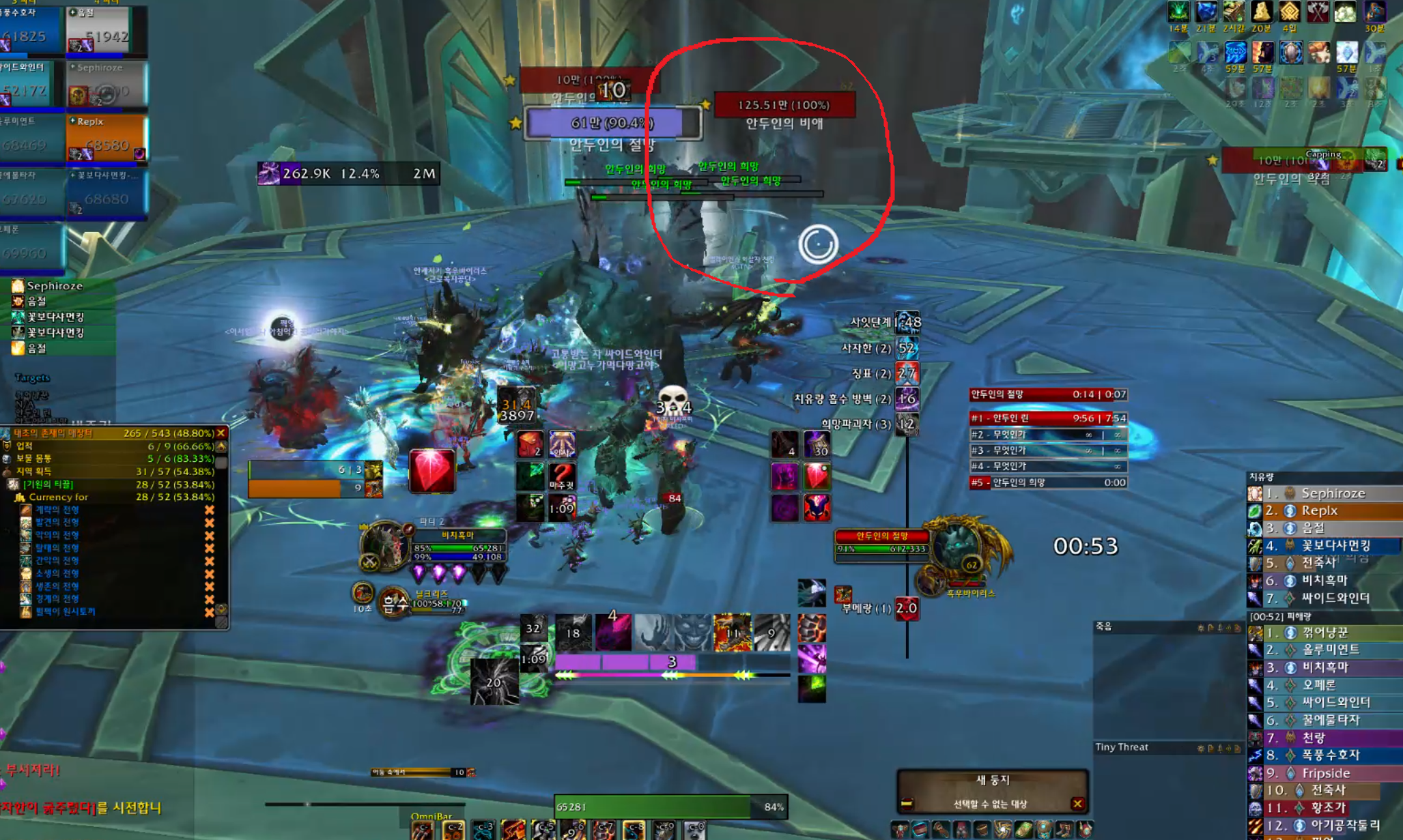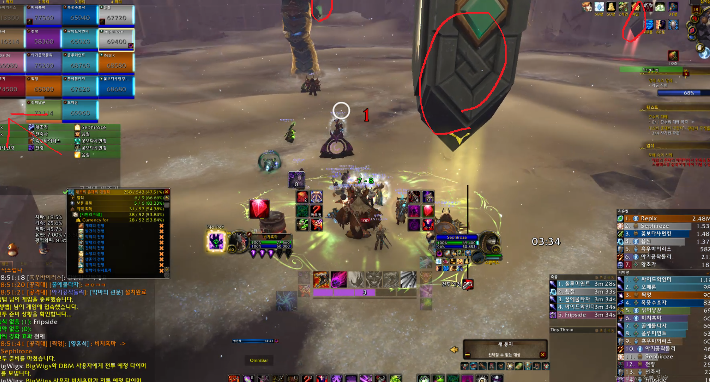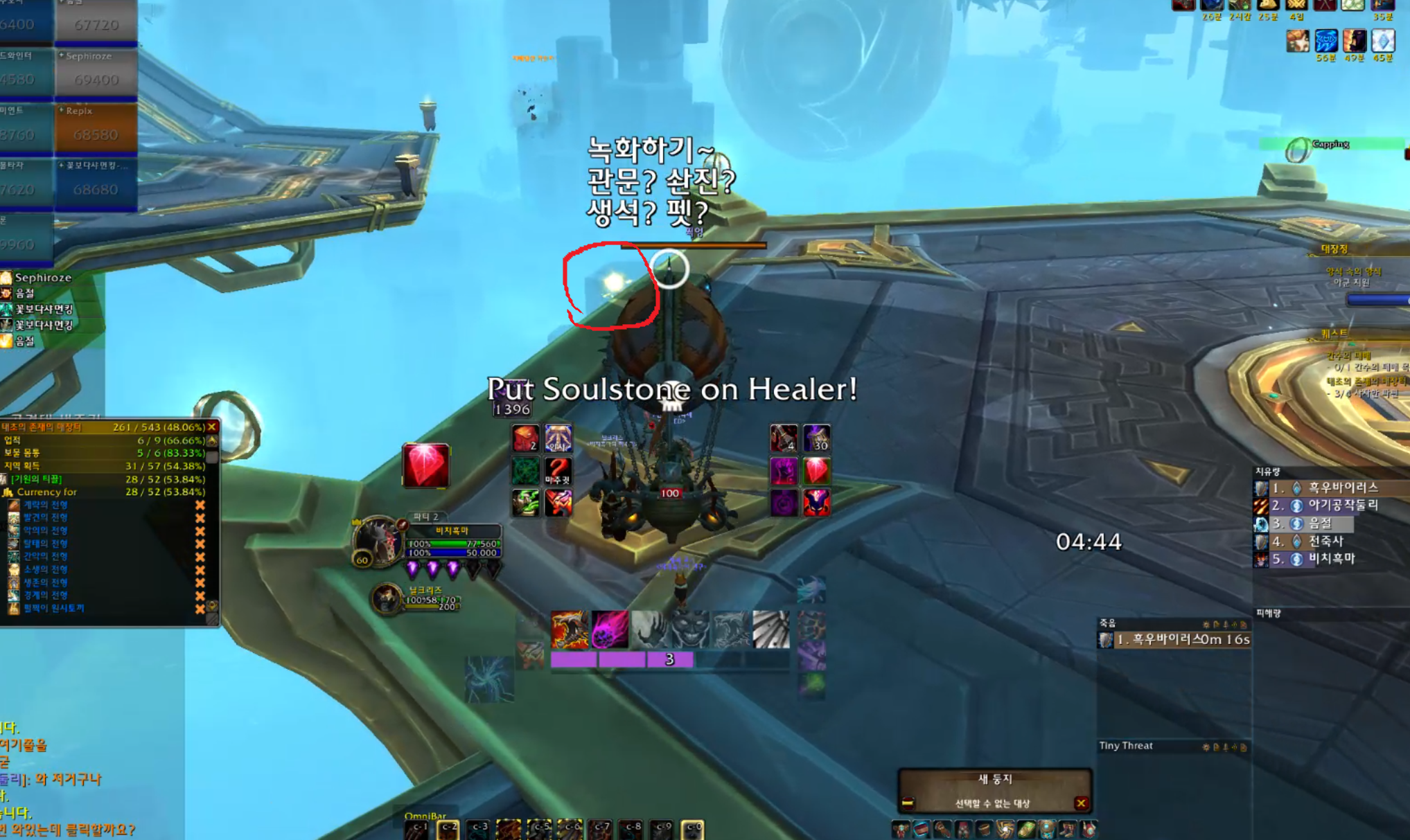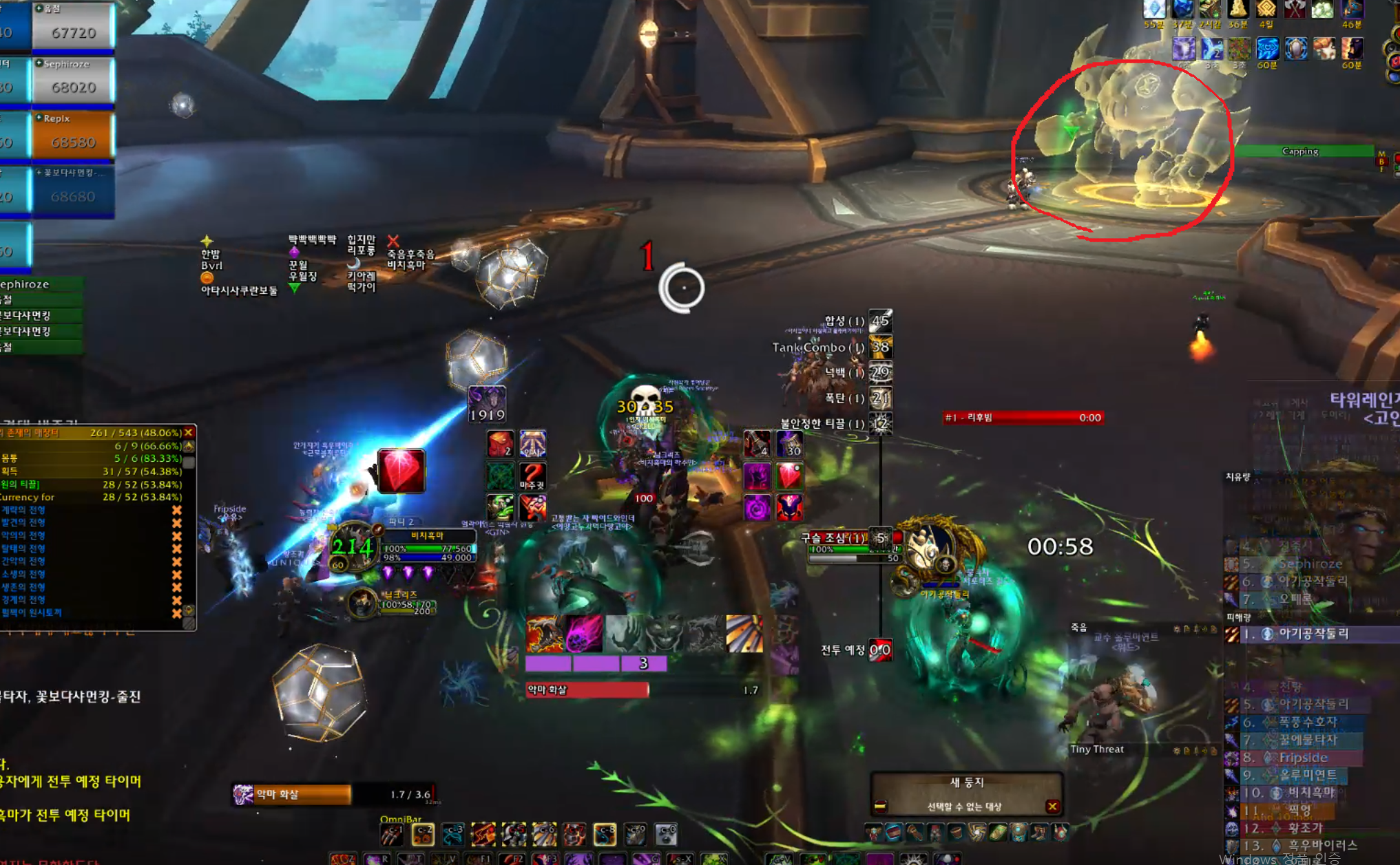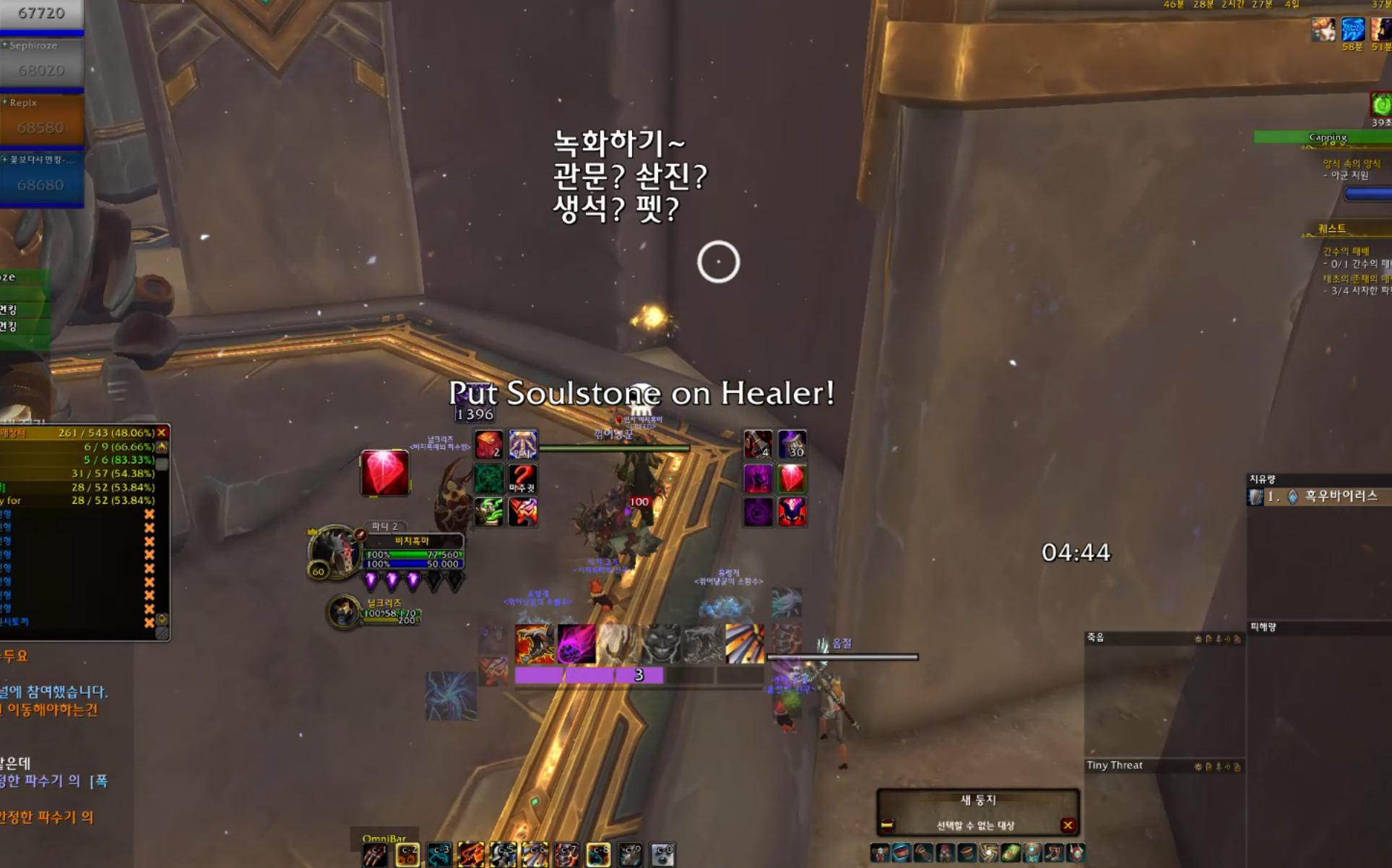 분해의 후광을 피할수있는 법사라던지 흑마라던지 벤티르등이 좋습니다. 저희는 법사가 했습니다.