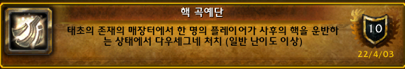 | [와우업적]운명의 어둠땅 공격대원 (2) | 2022.08.20 |