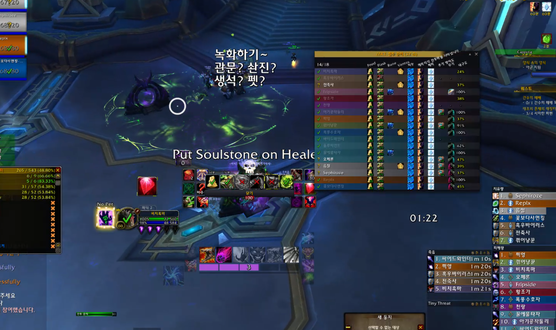 흑마가 관문을 깔아주면 특임하는사람이 편합니다. 저희는 특임을 법사3명이 1번2번3번을 하였고 갈때 관문 올때 어둠의문으로 하였습니다.