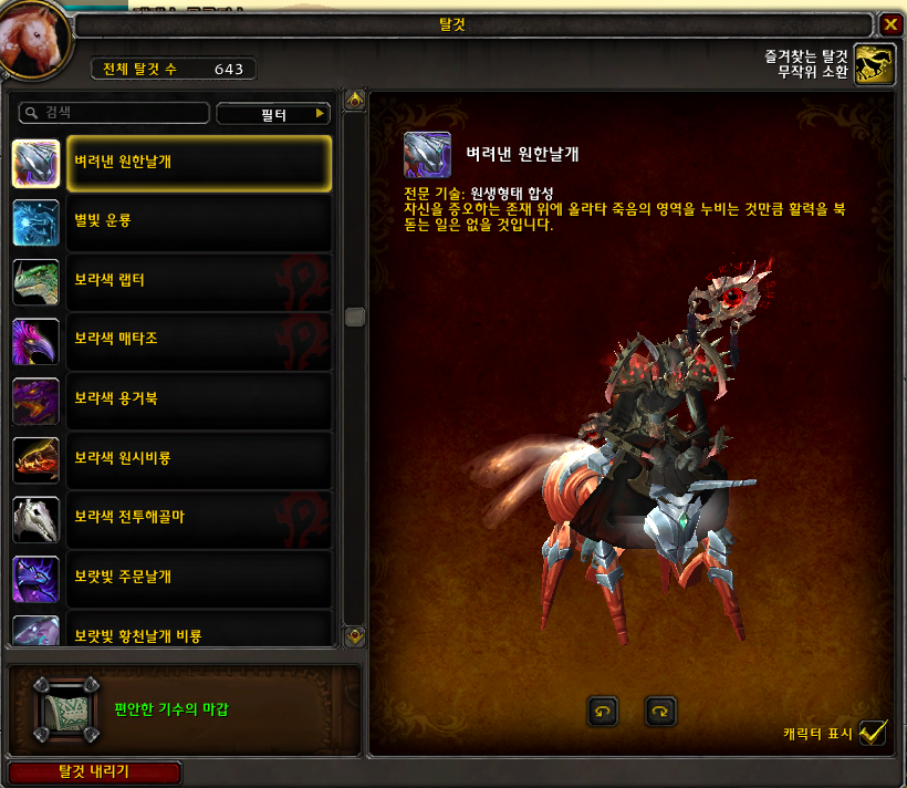 2022.04.11 벼려낸 원한날개 획득 643번째 탈것