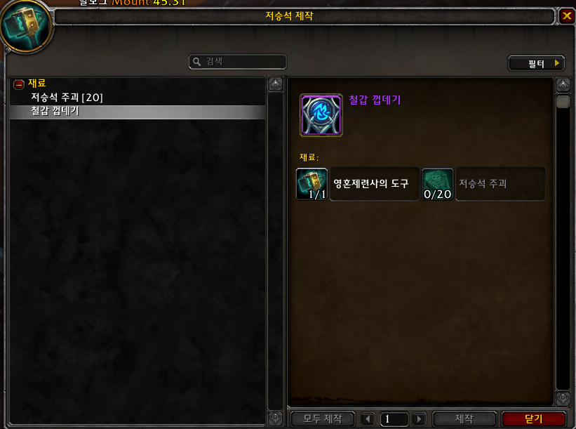 모루에서 모았던 재료로 저승석 주괴 / 철갑 껍데기를 제작하시면 됩니다.