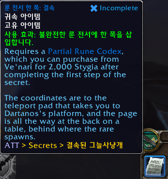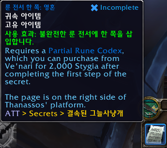 불완전한 룬 전서를 우클릭하면 필요한 부분 세 쪽이 필요하다고 합니다.