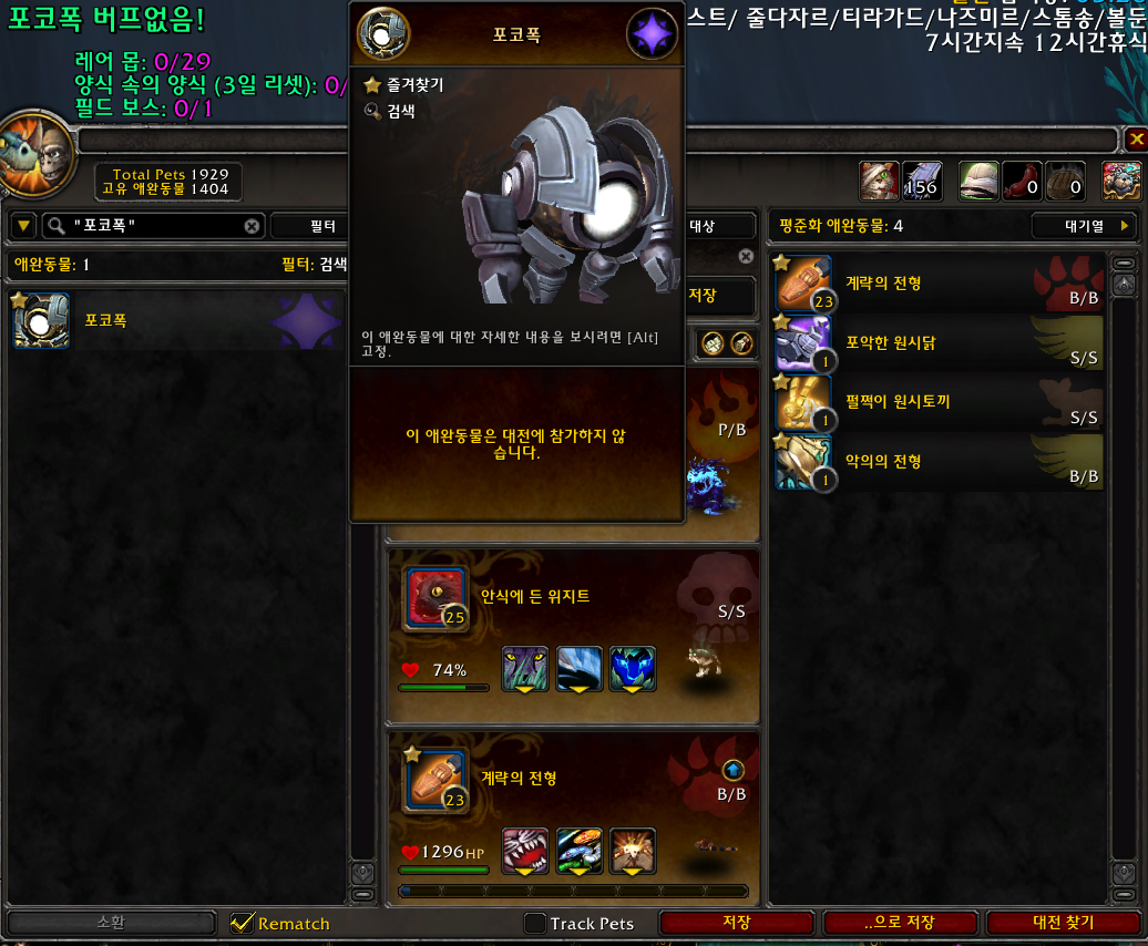 포코폭 소환이 있기때문에 애완동물 포코폭이 소환이 안됩니다.