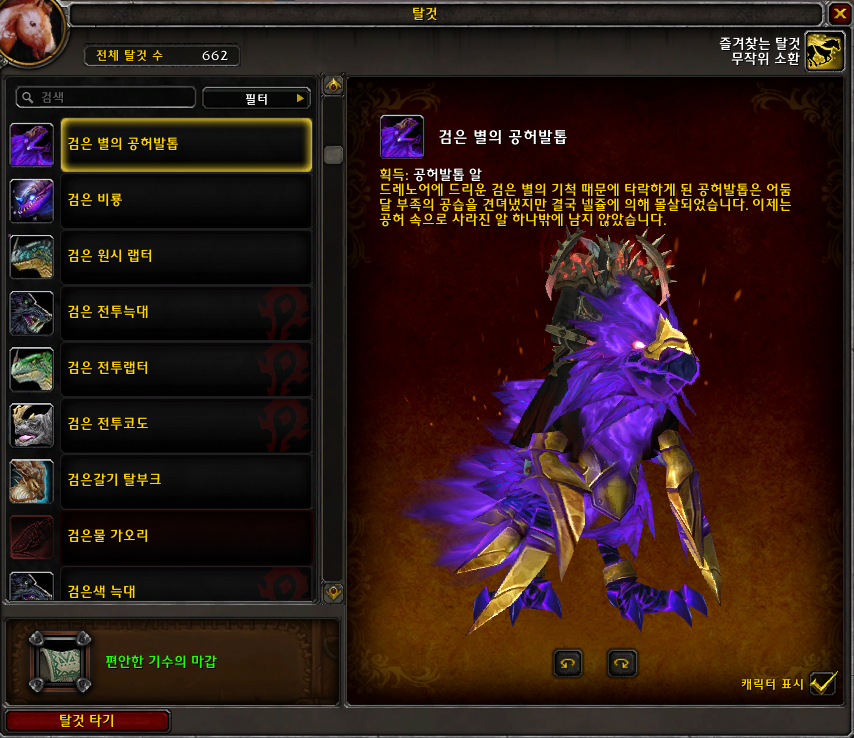 검은 별의 공허발톱 탈것은 드레노어 확장팩 탈것입니다.