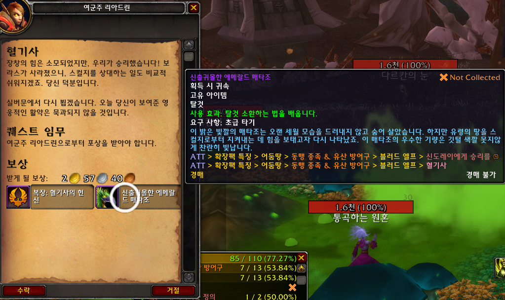 마지막 퀘스트인 혈기사를 완료하면 룩과 탈것을 줍니다.