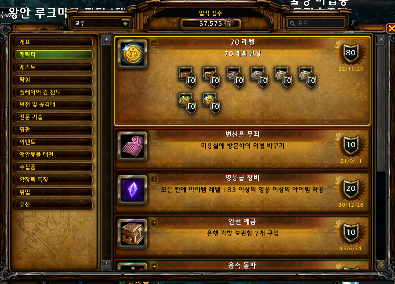 2022.11.29 70레벨 획득 10점짜리 37575점