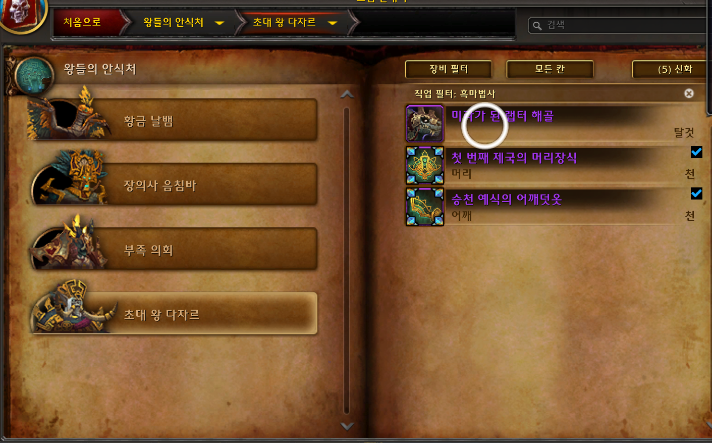 무덤 추적자 탈것은 격아 확장팩 탈것으로 왕들의 안식처 막넴인 왕 다자르를 잡으면 낮은 확률로 획득가능합니다.