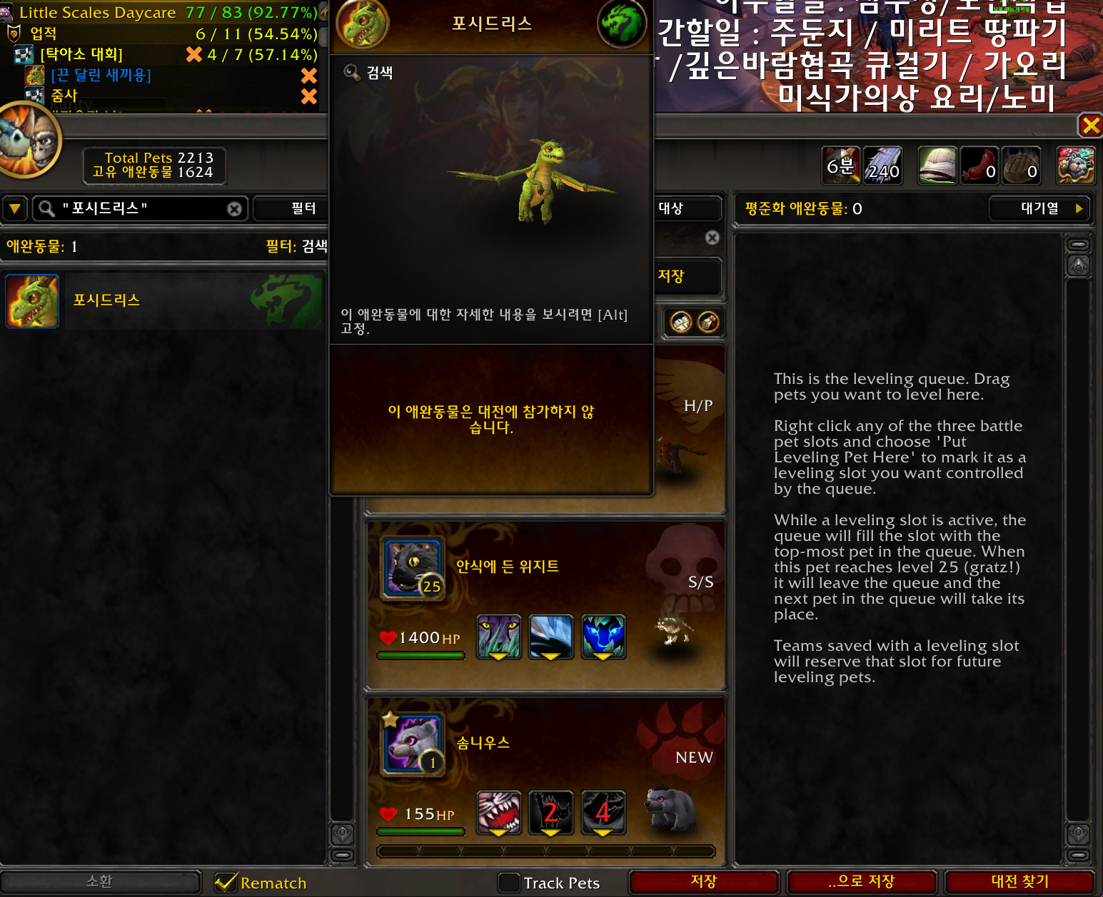 포시드리스는 애완동물스킬이 없고 전투에 참여불가능한 애완동물입니다.