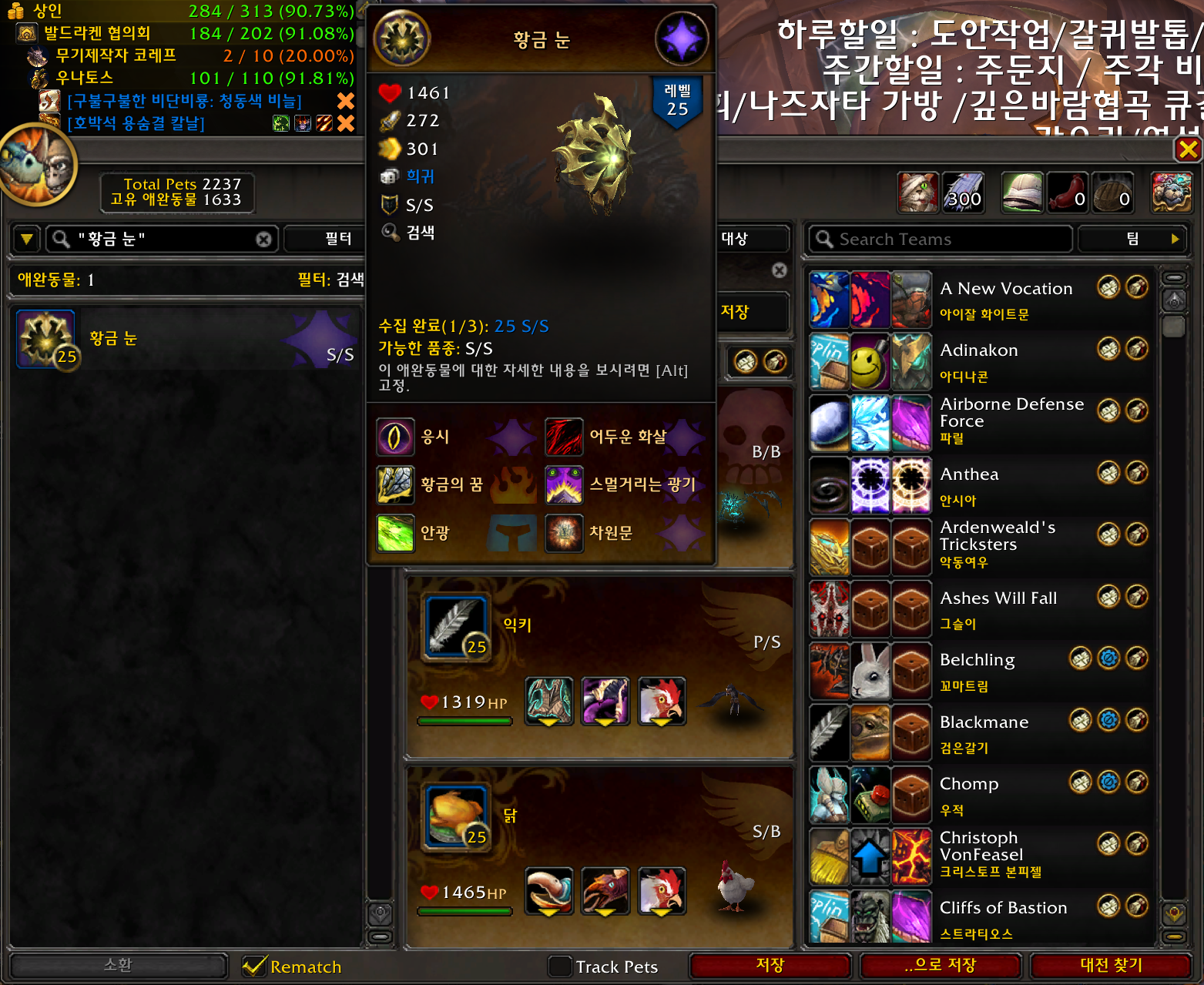 황금 눈 애완동물은 어둠땅 확장팩 애완동물로 나락에서 저승살이 영혼추적자를 잡아서 획득합니다.