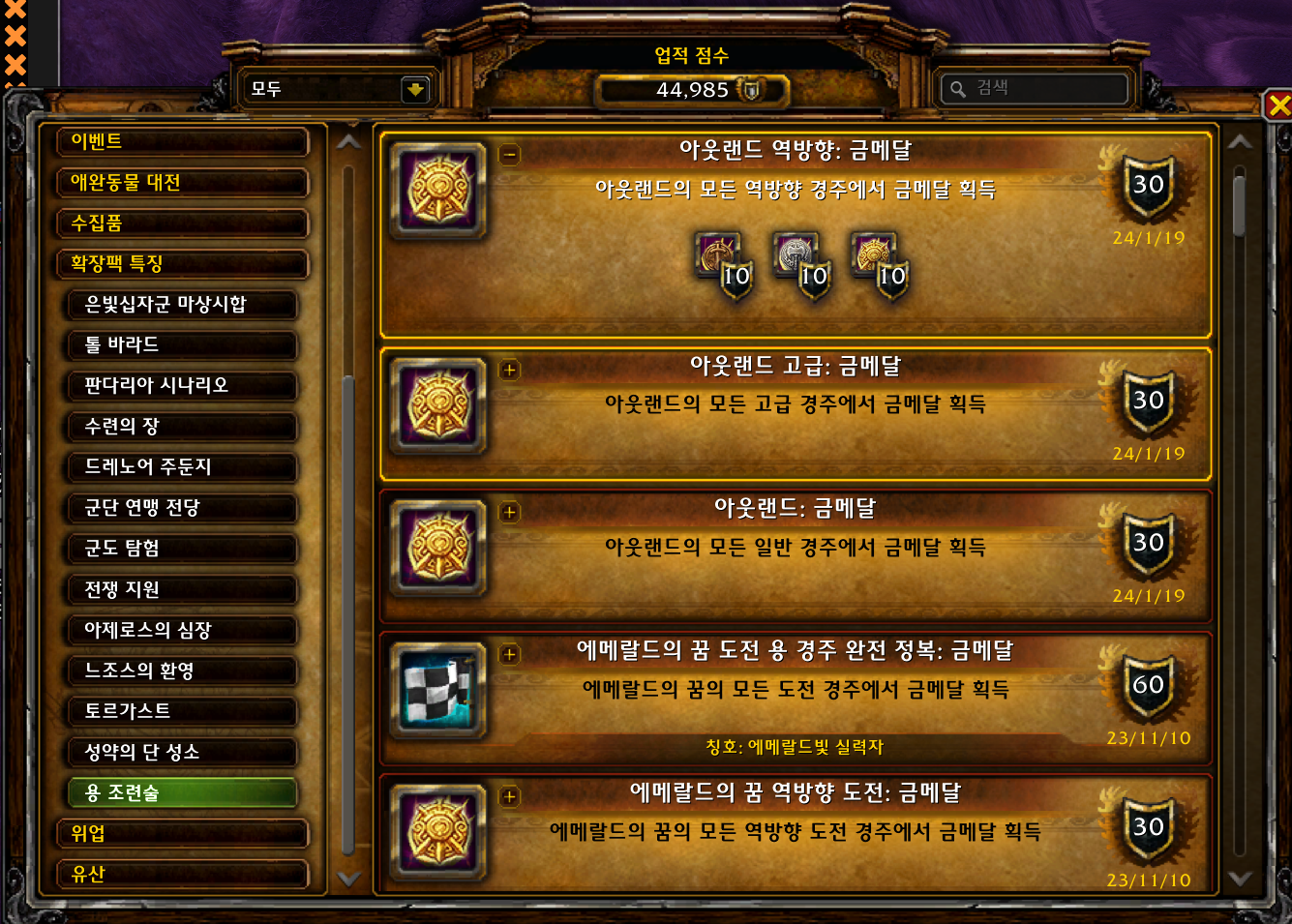 2024.01.19 아웃랜드 역방향: 동메달 획득 10점짜리 44905점