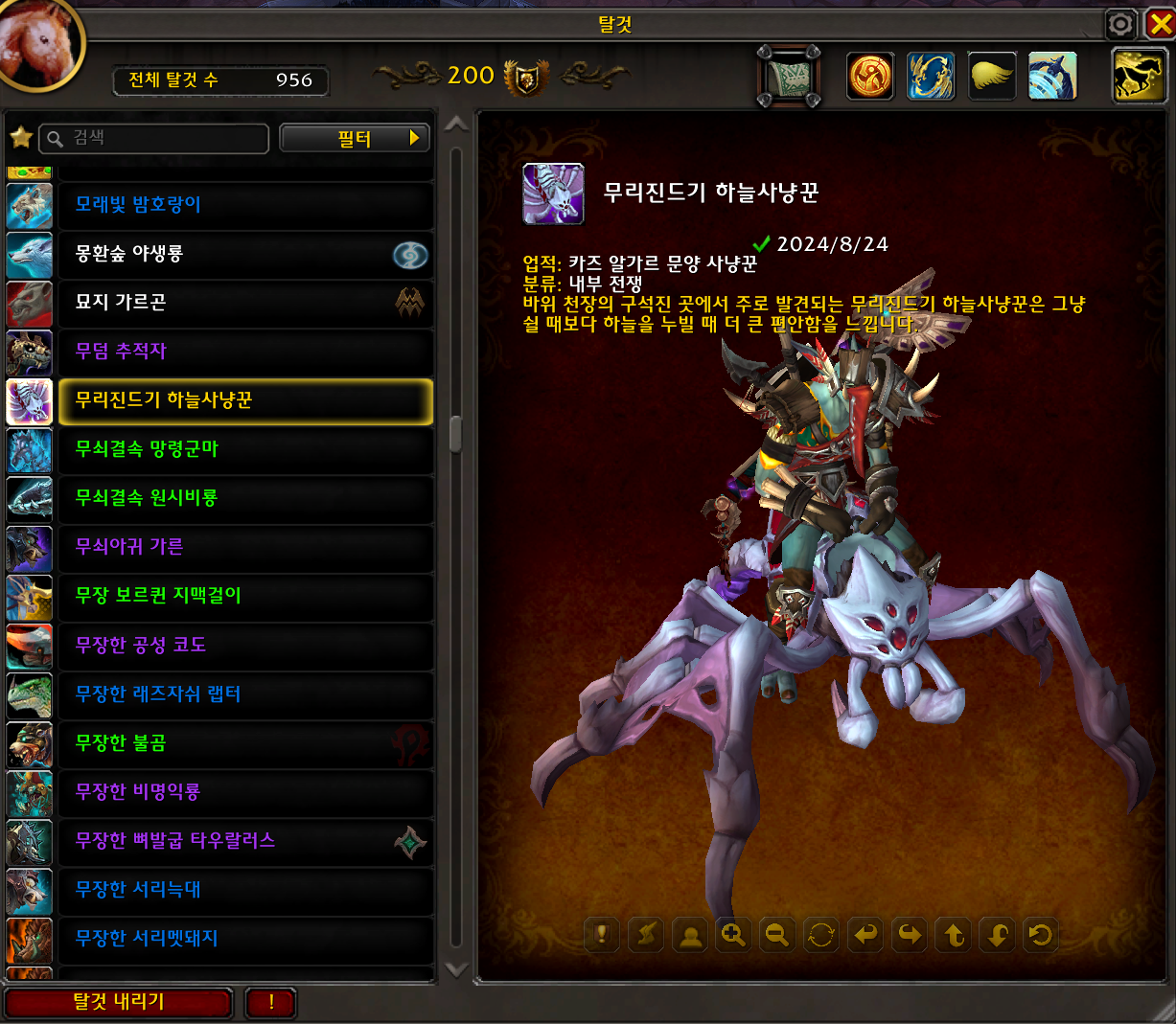 2024.08.24 무리진드기 하늘사냥꾼 획득 956번째 탈것