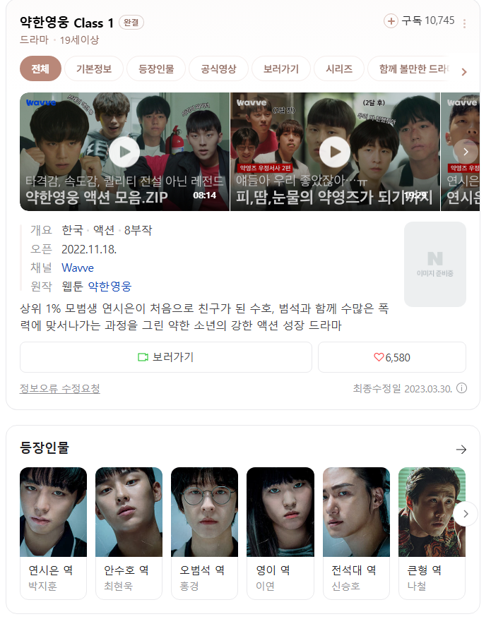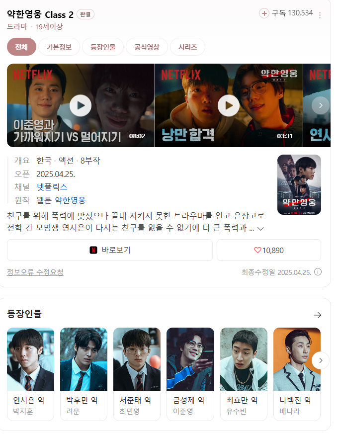 25.06.24~25.07.03 약한영웅 Class1 9.5점 / 약한영웅 Class2 9점