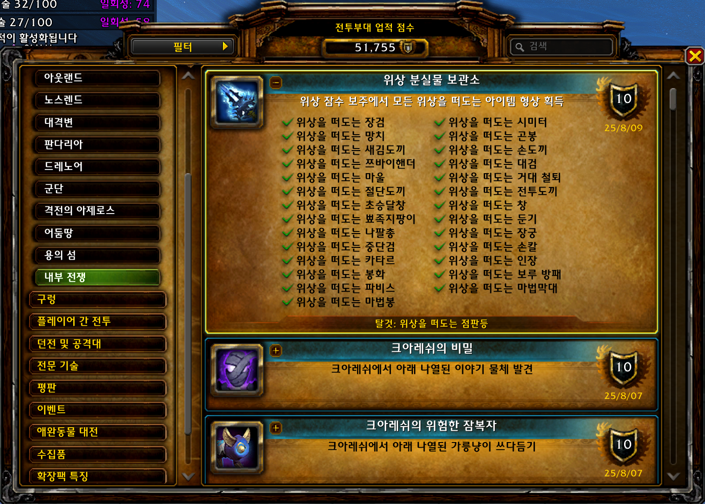 2025.08.09 위상 분실물 보관소 획득 10점짜리 51755점