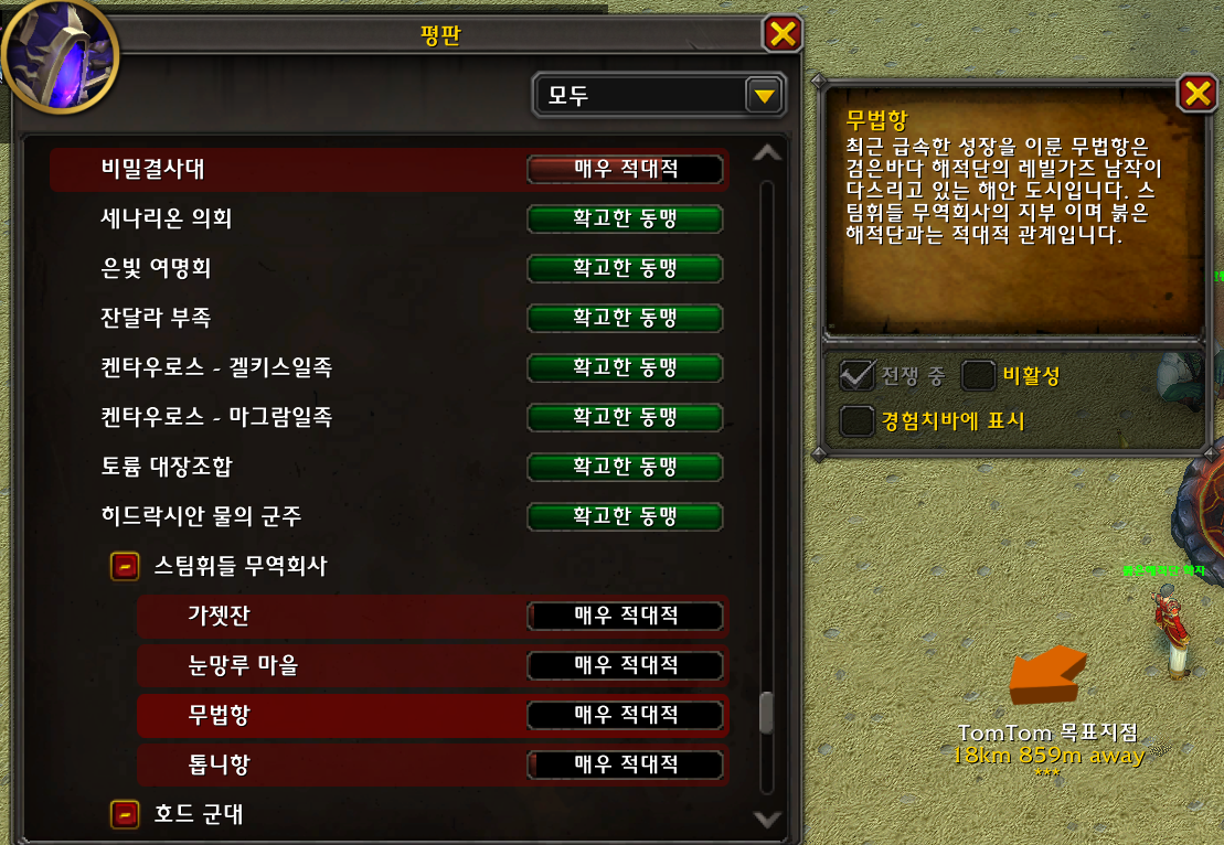 무법항 평판에 전쟁중 체크를하고 무법항에서 무법항투사들을 죽이면 됩니다.