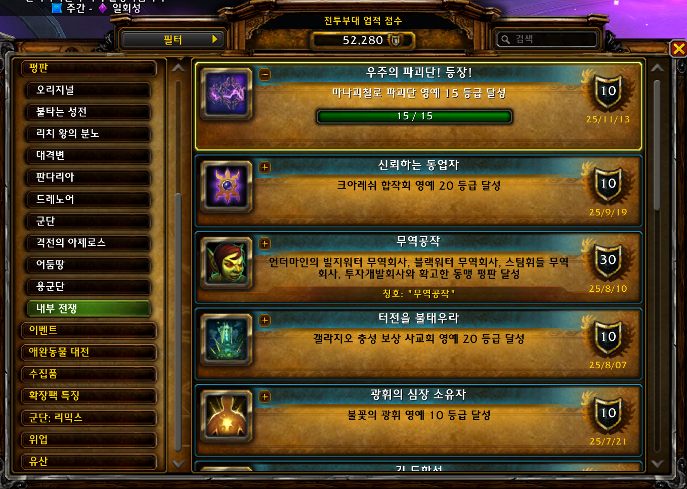 우주의 파괴단! 등장! 업적은 내부전쟁 확장팩 업적으로 내부전쟁3시즌 레이드 업적입니다.