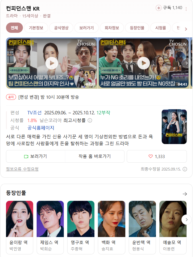 25.11.12~25.11.23 컨피던스맨 kr 후기 9.5점